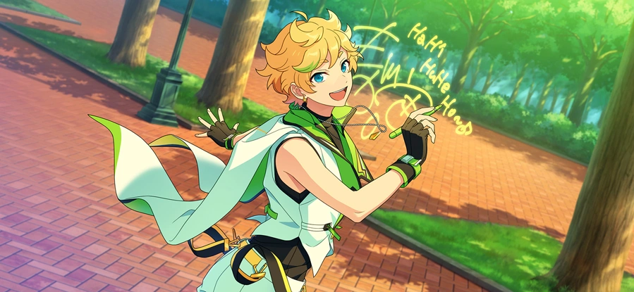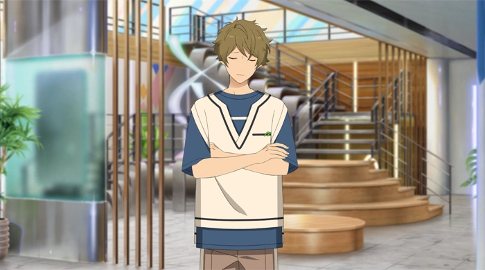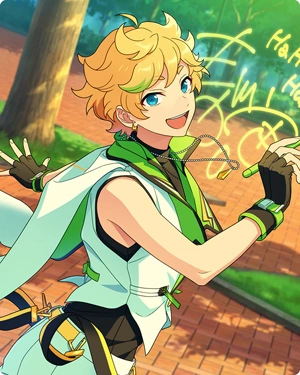 - ↑ This is referring to the Mega Stream main story arc. In July, all the ES idols were locked up in the Mega Sphere for a month to do a world-wide stream (Midori was particularly shown to be anxious about this in Sailing Ceremony) As of August, idols can freely go between ES and Mega Sphere as they like.