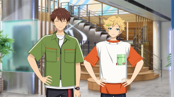- ↑ This is referring to the Mega Stream main story arc. In July, all the ES idols were locked up in the Mega Sphere for a month to do a world-wide stream (Midori was particularly shown to be anxious about this in Sailing Ceremony) As of August, idols can freely go between ES and Mega Sphere as they like.
